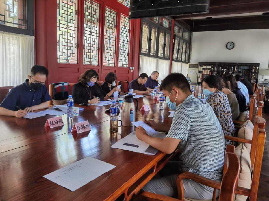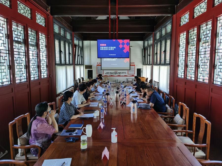 2022年6月23日下午,北京艺术博物馆举办《京派绘画与中国绘画体系的现代性研究》课题开题专家论证会。会议由课题负责人北京艺术博物馆业务部杨小军主持,参加会议人员有:首都博物馆研究馆员黄雪寅女士、首都师范大学教授吴明娣女士、首都师范大学副教授任军伟先生、中央民族大学副教授赵盼超先生、中国艺术研究院副研究员牟晓林先生五名专家;以及北京艺术博物馆王丹馆长、张振松副馆长,北京艺术博物馆学术带头人杨俊艳、《万寿寺古建筑及馆藏文物研究》课题负责人王淑珍。还有来自北京艺术博物馆和清华大学艺术博物馆两家单位的课题组人员:北京艺术博物馆副研究馆员杨小军、馆员王田,以及清华大学艺术博物馆副研究馆员倪葭、馆员安夙、馆员龙云。