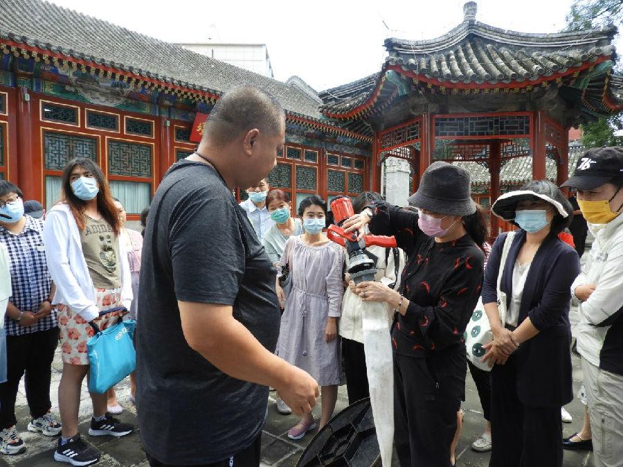为加强博物馆的安全工作,夯实安全基础,普及安全知识,进一步提高博物馆从业人员的安全意识和防范能力,2022年8月,北京艺术博物馆进行开馆前的一系列的岗前安全技能培训活动,培训对象为全体职工、安保人员和志愿者等博物馆全体工作人员,培训采用“理论+实操”的方式开展。