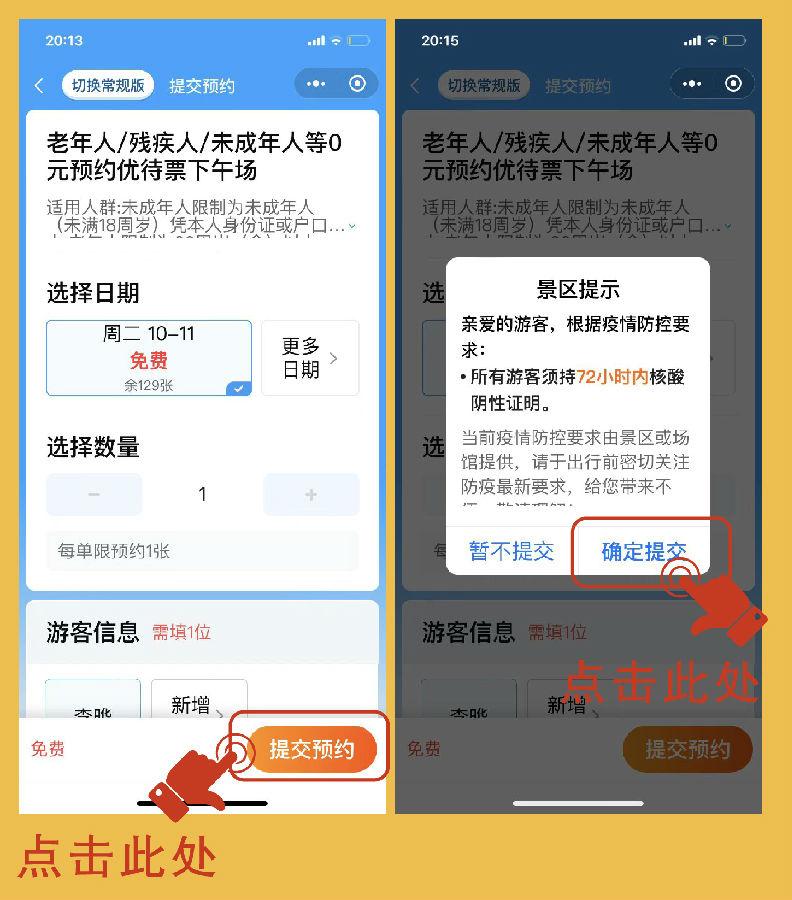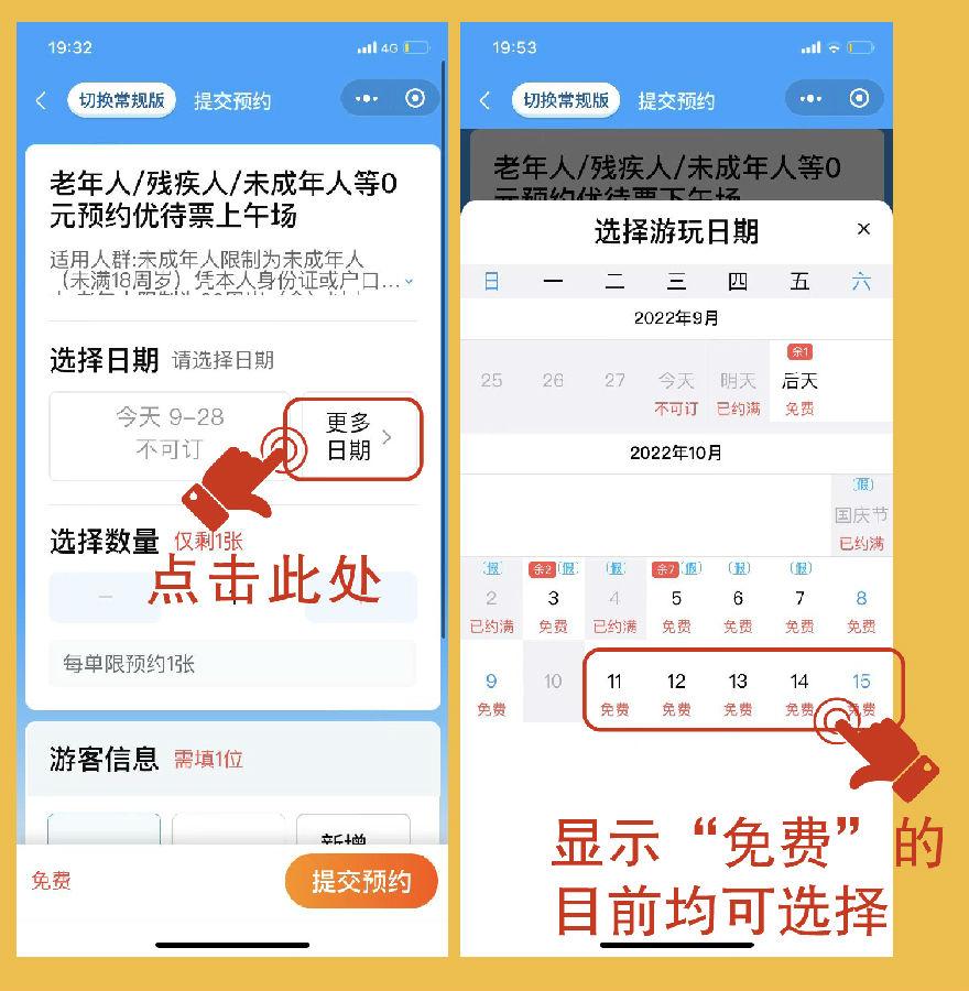1. 点击选择老年人/残疾人/未成年人等0元预约优待票