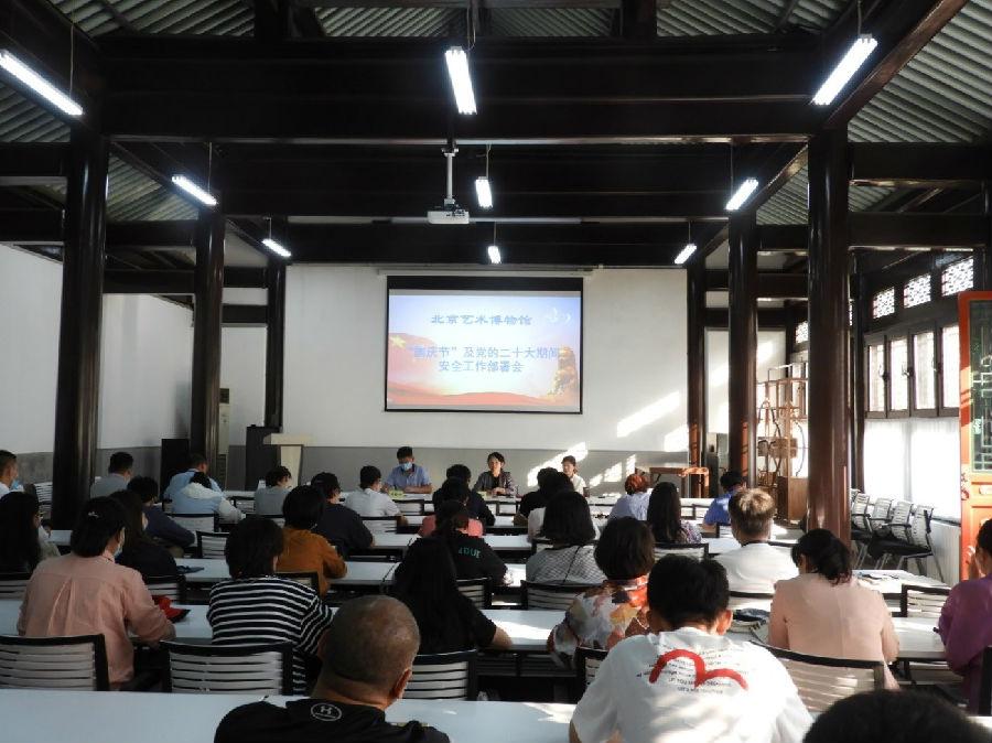 为切实消除各类安全隐患,确保安全形势稳定可控,以实际行动迎接党的二十大胜利召开, 2022年9月28日,北京艺术博物馆召开“国庆节”及党的二十大期间安全工作部署会。会议由张振松副馆长主持,博物馆全体职工、安保公司、物业公司、合作单位负责人参加了会议。