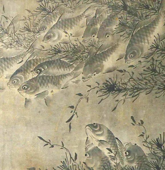 馆藏清代朱云燝绘《白鲤图》,纸本长卷上绘形态各异的鲤鱼成群结队游动。画家用墨浓、淡、清、重,巧妙变幻,使画面产生阴阳明暗、虚实动静的效果,呈现出百条鲤鱼的灵动活泼。“鲤鱼跃天江,鹓鸾下天沼”是奋发向上、祥瑞富足的征兆。