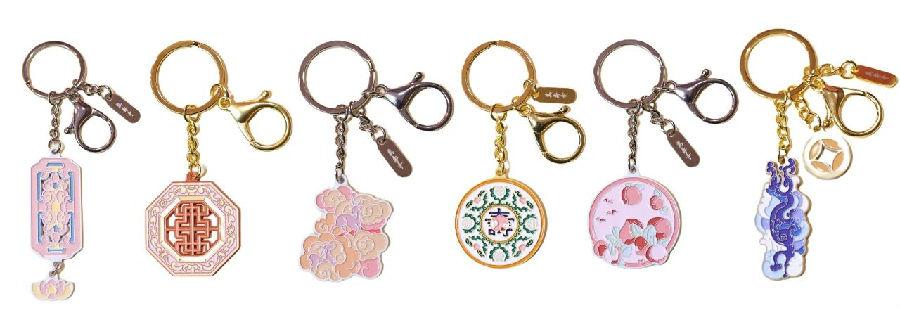 吉祥如意系列钥匙扣,以艺博馆藏文物“斗彩灵仙祝寿图盘”“粉彩松鹿纹瓶”等文物元素进行设计。将其整体形象作为设计主体,保存了原文物的主要皇家福寿文化。寓意着福寿康宁,吉祥如意,福禄平安。本产品有6款不同的图案,在配色上将其调整为更符合当今审美的颜色。