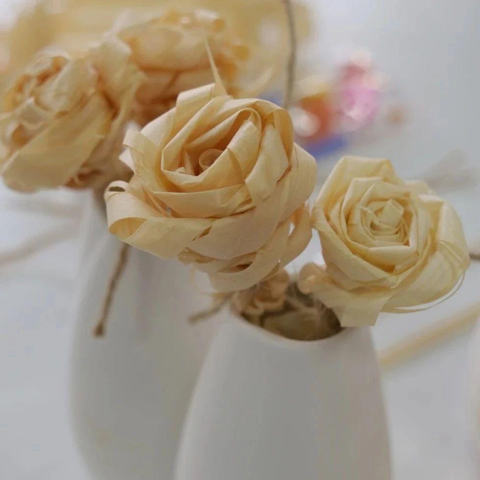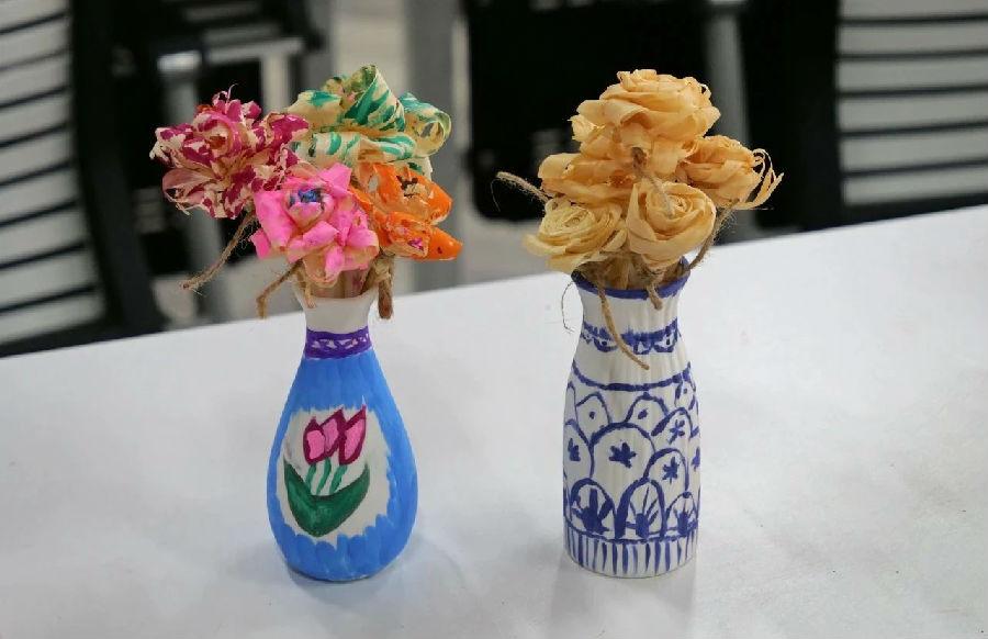 首先学习“刨子”的使用,在平直的木料刨出刨花,制作刨花玫瑰并涂上颜色;然后在纯色花瓶上进行绘画创作,将刨花插入瓶中,最终完成属于自己的手工作品。