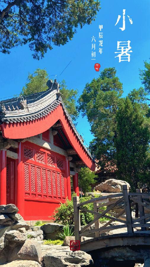 小暑来临的万寿寺,午后没有一丝风。中路假山上蝉鸣渐起,炽热的阳光直射下来,红墙绿树格外艳丽。