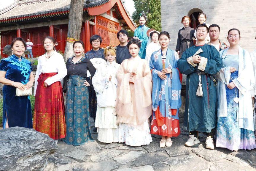活动当天,20多位身着各式传统服饰表演者以万寿阁为起点,在博物馆内进行了精彩的巡演。他们身着不同时代的传统服饰,仿佛穿越时空而来,与明清古寺相得益彰。在讲解员的带领下,在北京艺术博物馆进行巡游展示。