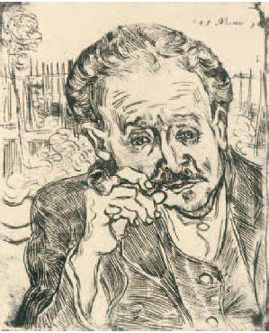 这张版画绘制于1890年5月,画面率性松弛,繁密的线条并不着力于细节的精准,却到位地捕捉了人物的神韵与个性特征。整幅画充满了梵高对画中人深厚的感情。梵高一共为加歇医生画过三幅画像:两幅油画、一幅版画。