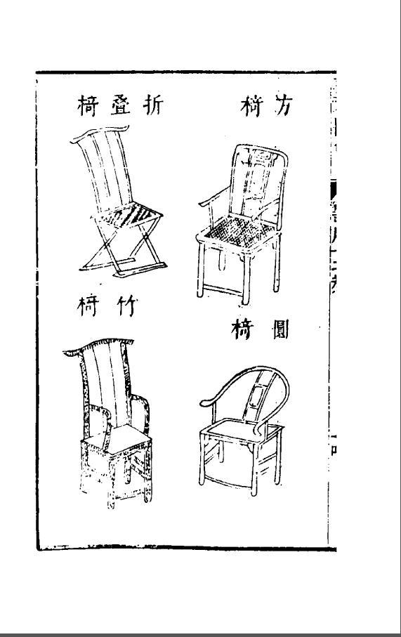 椅凳类包括多种坐具,如无靠背的杌凳、坐墩、长凳等,及有靠背的靠背椅、扶手椅、圈椅等。“杌”字本指树木没有枝杈,以“杌”作为坐具的名字,主要是指没有靠背的一类,区别于椅子。扶手椅常见的形式有“玫瑰椅”和“官帽椅”。圈椅因靠背其状如圈而得名,后背和扶手一顺而下,坐在上面不仅肘部有所依托,腋下一段臂膀也得到支撑。