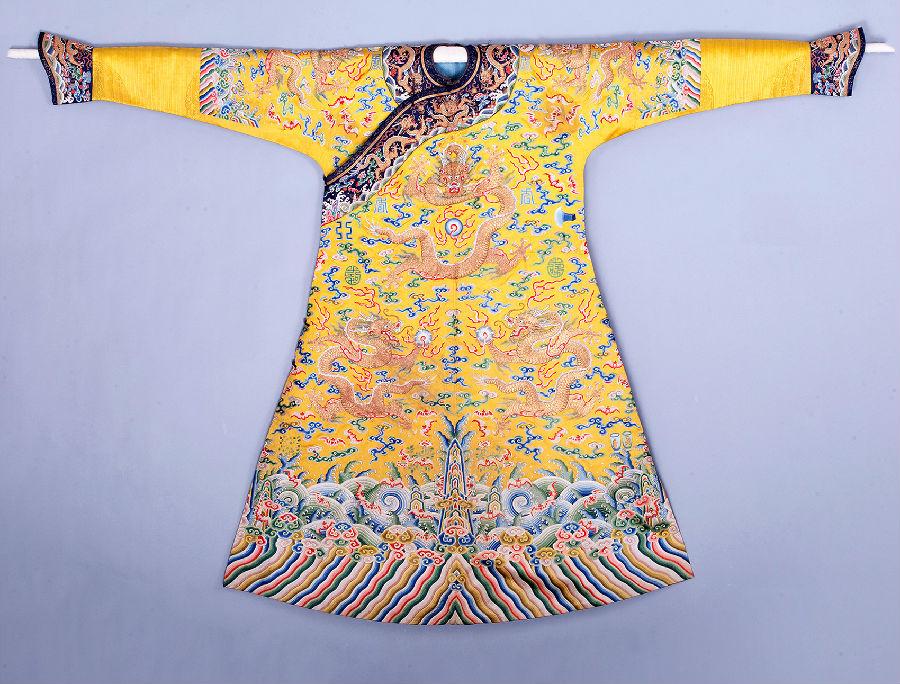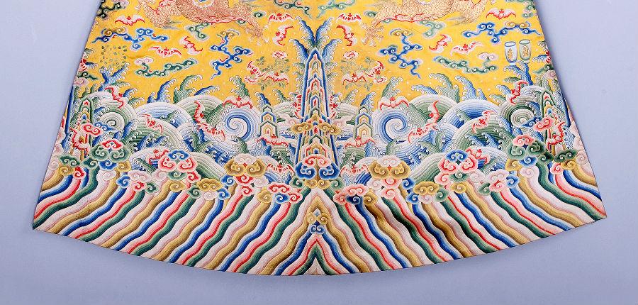 每周一品之九——明黄缎绣五彩云蝠金龙十二章吉服袍