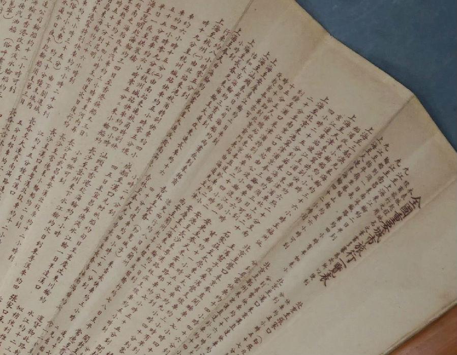 背面为《全国重要城市旅行一览表》,以起程地名笔画多寡为序,标注了上海、天津、北京、汉口、广州等51个城市之间的182条城市交通线路,注明所乘交通工具及时间,“便利经商旅行之用”。此扇将传统折扇与地图、交通线路合而为一,图案文字清晰,体现了近代印刷技术的发展。