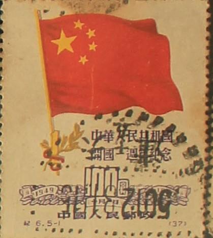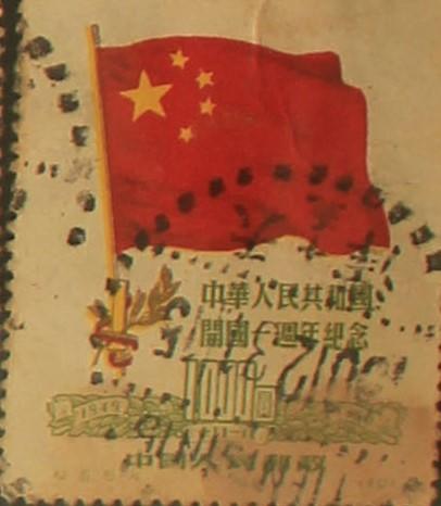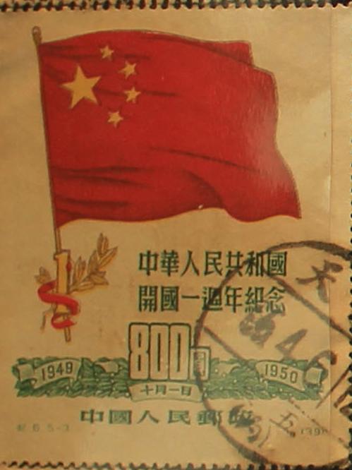 《中华人民共和国开国一周年纪念》邮票是中华人民共和国邮电部为了纪念中华人民共和国成立一周年,于1950年10月1日发行的,志号为“纪6”的纪念邮票。