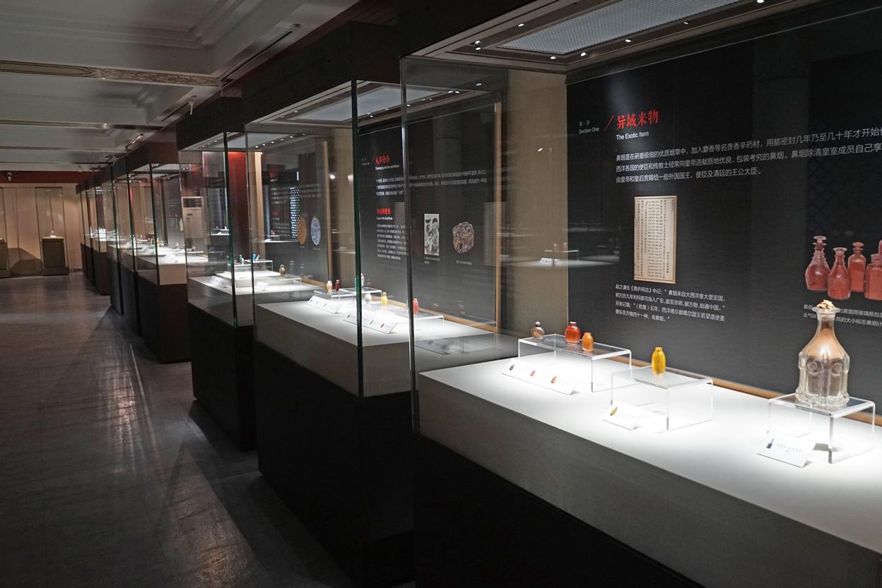 本次展览展出馆内珍藏的珍贵文物76件套,分三个部分“星芒的闪耀——源自西方的雅物”、“无尽的风姿——流行清宫的潮物”、“最后的辉煌——鼻烟壶的‘绝唱’”。 鼻烟壶可谓是我国博大精深的工艺美术的结晶,它不仅集绘画、书法、诗词于一身,还包含着制瓷、雕刻、镶嵌、玻璃工艺等更为广泛的工艺技术,集中地展示了我国古代匠师们高超的技艺和卓越的才能。