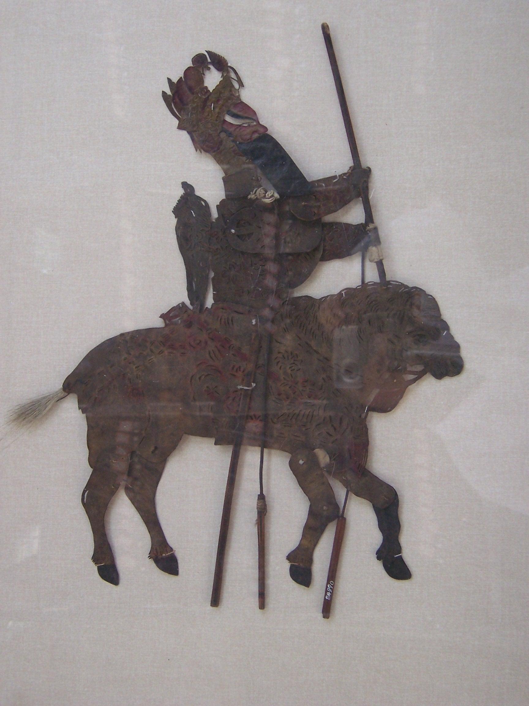 皮影戏,又称“影子戏”或“灯影戏”,是一种以兽皮或纸板做成的人物剪影,在光源的照射下用隔亮布进行演戏,是中国汉族民间广为流传的傀儡戏之一。表演时,艺人们在白色幕布后面,一边用手操纵戏曲人物,一边用当地流行的曲调唱述故事,同时配以打击乐器和弦乐,有浓厚的乡土气息。