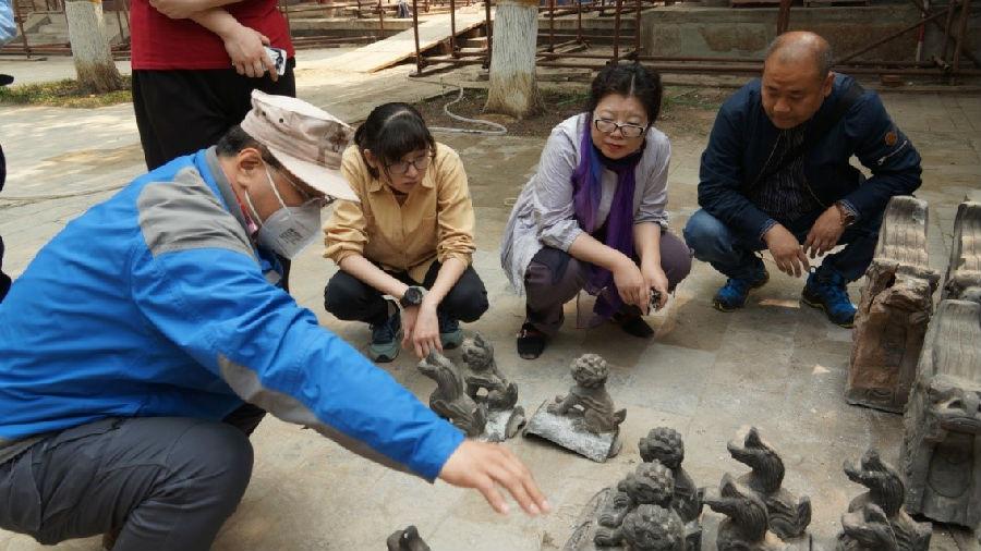 随着万寿寺修缮工程的展开,为更好地保存古代技艺,北京艺术博物馆邀请北京古代建筑博物馆的保管专家从万寿寺修缮替换下来的瓦当、兽脊、椽、望板等旧件中,挑选17件品相较好的构件作为北京古代建筑博物馆的标本,填补了古建馆馆藏标本的种类、数量。