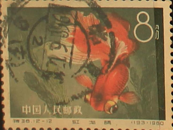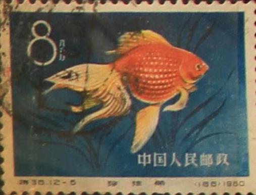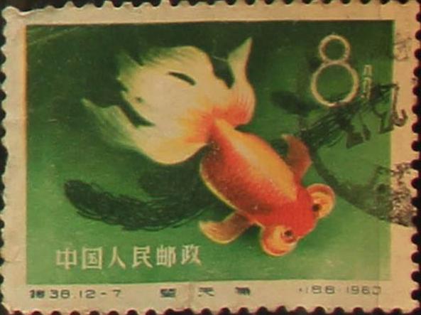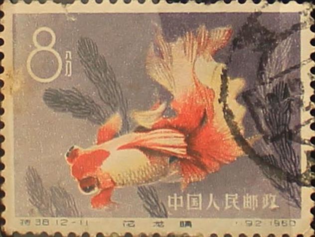 中国金鱼是世界观赏鱼史上最早的品种,陪伴人们有十几个世纪了。为了弘扬中国的传统鱼文化,1960年6月1日发行《特38—金鱼》特种邮票,全套12枚。依次为:1、翻腮绒球;2、黑背龙睛;3、水泡眼;4、红虎头;5、珍珠鱼;6、蓝龙睛;7、望天鱼;8、红帽子;9、紫帽子;10、红头;11、花龙睛;12、红龙睛。