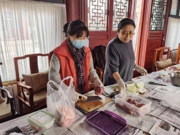 随后,大家自己动手,发挥想象力,亲手插出一束心中最美的花,并在党支部书记的指导下,团结协作共同参与制作美食。