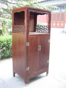 方角柜,四角见方,上下同大,腿足垂直无侧脚。其上无顶箱的古称“一封书式”,其貌似有函套的线装书。上有顶箱的叫“顶箱立柜”,又叫“四件柜”。四件柜大小相去悬殊,小的也可放在炕上使用,亦称“炕柜”,大的高达三四米,置之高堂,或上与梁齐。