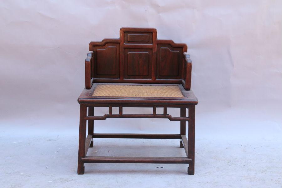 酸枝木透雕博古图嵌螺钿石面扶手椅 清