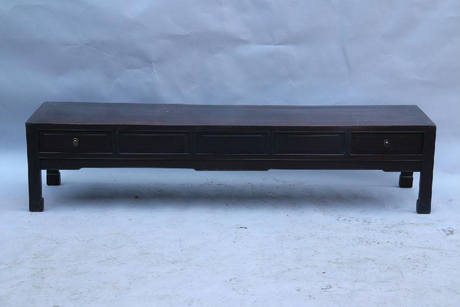 炕桌是矮形桌案的一种,其宽度一般超过长度的一半。多用于床上或炕上,侧端贴近床沿或炕沿,居中摆放,两旁坐人。