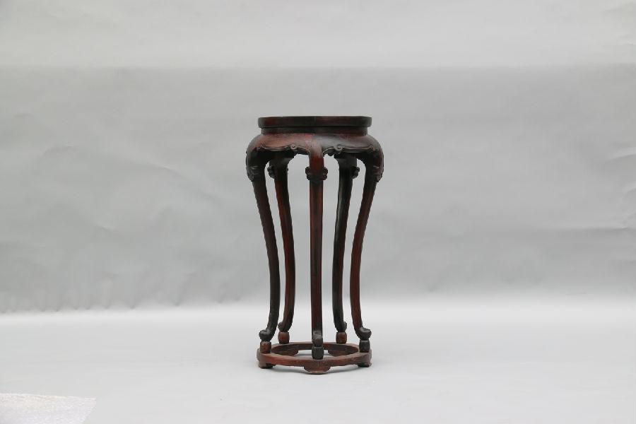 酸枝木嵌大理石面雕梅花形兽足凳 清