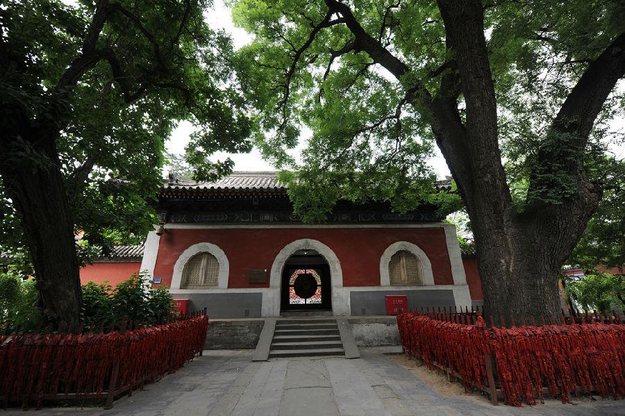 万寿寺内一进山门,就能看到有一棵由三个人才能环抱的老槐树,现在为一级古树。当7、8月的酷暑季节进入万寿寺,立刻就能感受到阵阵清凉,去暑气。在明清两代,人们进入寺庙后的这种体验,也有利于静心凝神,自我修行,膜拜礼佛。