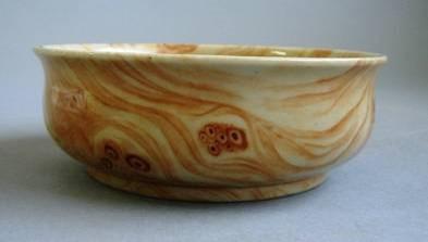 仿木纹以“扎古扎雅木”碗的造型最为常见。造型与西藏僧人所用木碗极为相似,仿木质纹理清晰,釉面质感逼真。乾隆皇帝在御制诗中称其为“扎古扎雅木”。