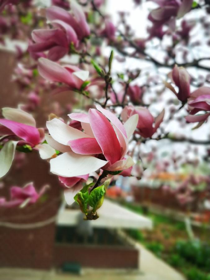 玉兰总是先开花后长叶,早春时节,玉兰花盛开时,满树白花洁白如玉,素雅芳香。白色的花瓣向四方伸展,酷似一朵朵莲花开在高高的枝头,迎风摇曳,神采奕奕,有诗云“束素亭亭玉殿春”“点破银花玉雪香”,玉兰也是我国古代文人喜爱的植物之一。