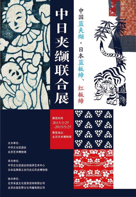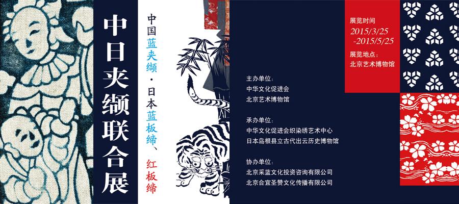 为弘扬中国传统夹缬印花技艺,促进中日两国传统文化之间的交流,由中华文化促进会、北京艺术博物馆主办,中华文化促进会织染绣艺术中心、日本岛根县立古代出云历史博物馆承办的《中日夹缬联合展——中国蓝夹缬·日本蓝板缔、红板缔》将于2015年3月25日至2015年5月25日在北京艺术博物馆举办。
