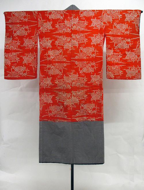 (菊花竹篱笆纹红板缔丝绸和服衬衣,19世纪末-20世纪初)